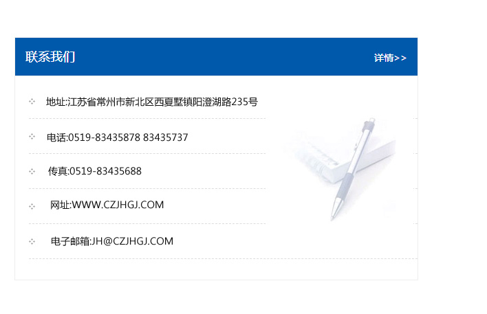 地址:常州市新北區友邦商務大廈1幢16、17層  電話:0519-85101652  傳真:0519-85112595  郵編:213022  網址:www_mjmjsjc_com.clgf1.com  郵箱:xiajifengaa@163.com